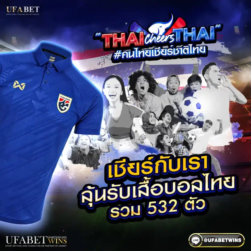 UFABET ได้จัดกิจกรรม THAI Cheers THAI (คนไทยเชียร์ชาติไทย) ในศึกฟุตบอล Asian Cup 2023 ระหว่างวันที่ 12-25 มกราคม 2567 เปิดโอกาสให้สำหรับสมาชิกที่ชื่นชอบในการ แทงบอล ที่เดิมพันฟุตบอลรายการ Asian Cup มีสิทธ์ลุ้นรับเสื้อทีมชาติไทยฟรีทุกวัน 532 ตัว โดยไม่มีค่าใช้จ่ายใดๆ เพิ่มเติม เพียงแค่ท่านเดิมพันฟุตบอลกับทาง UFABET รูปแบบใดก็ได้ 100 บาทขึ้นไปต่อบิล ก็มีสิทธ์ลุ้นรับเสื้อทีมชาติไทยได้